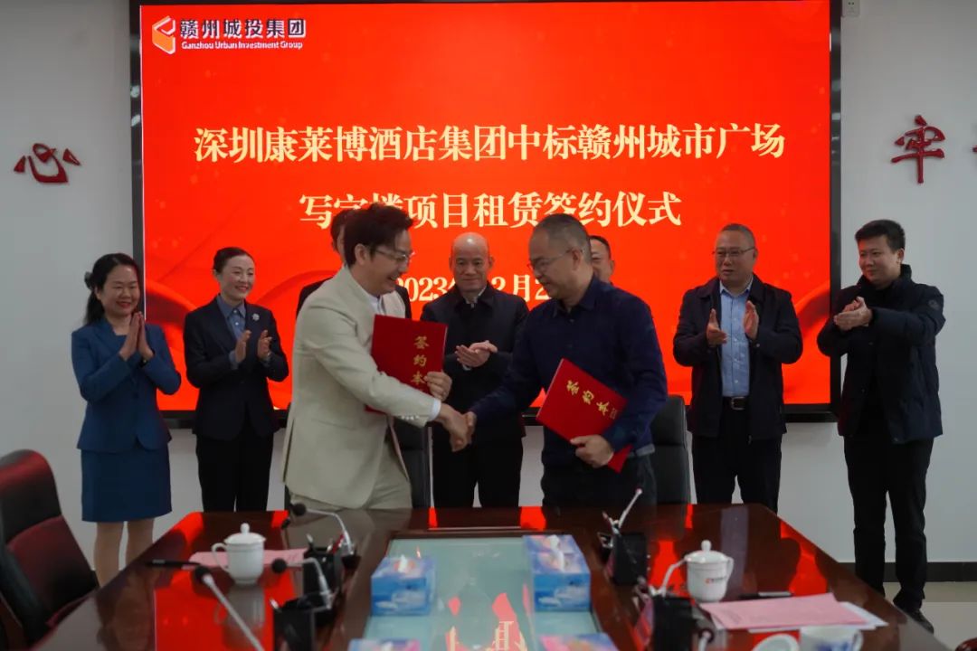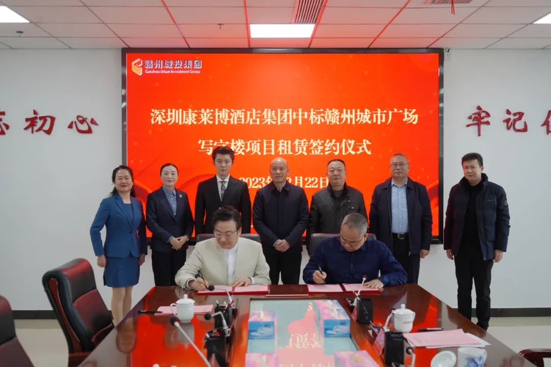 12月22日,贛州城投集團與深圳康萊博酒店集團舉行贛州城市廣場寫字樓項目租賃簽約儀式。贛州城投集團黨委書記、董事長劉曉方,黨委委員、副總經(jīng)理郭慶華,工會主席黃家偉以及深圳康萊博酒店集團董事長肖志堅出席,民晟實業(yè)公司、集團城市廣場招商組、深圳康萊博酒店集團相關(guān)人員參加簽約儀式。