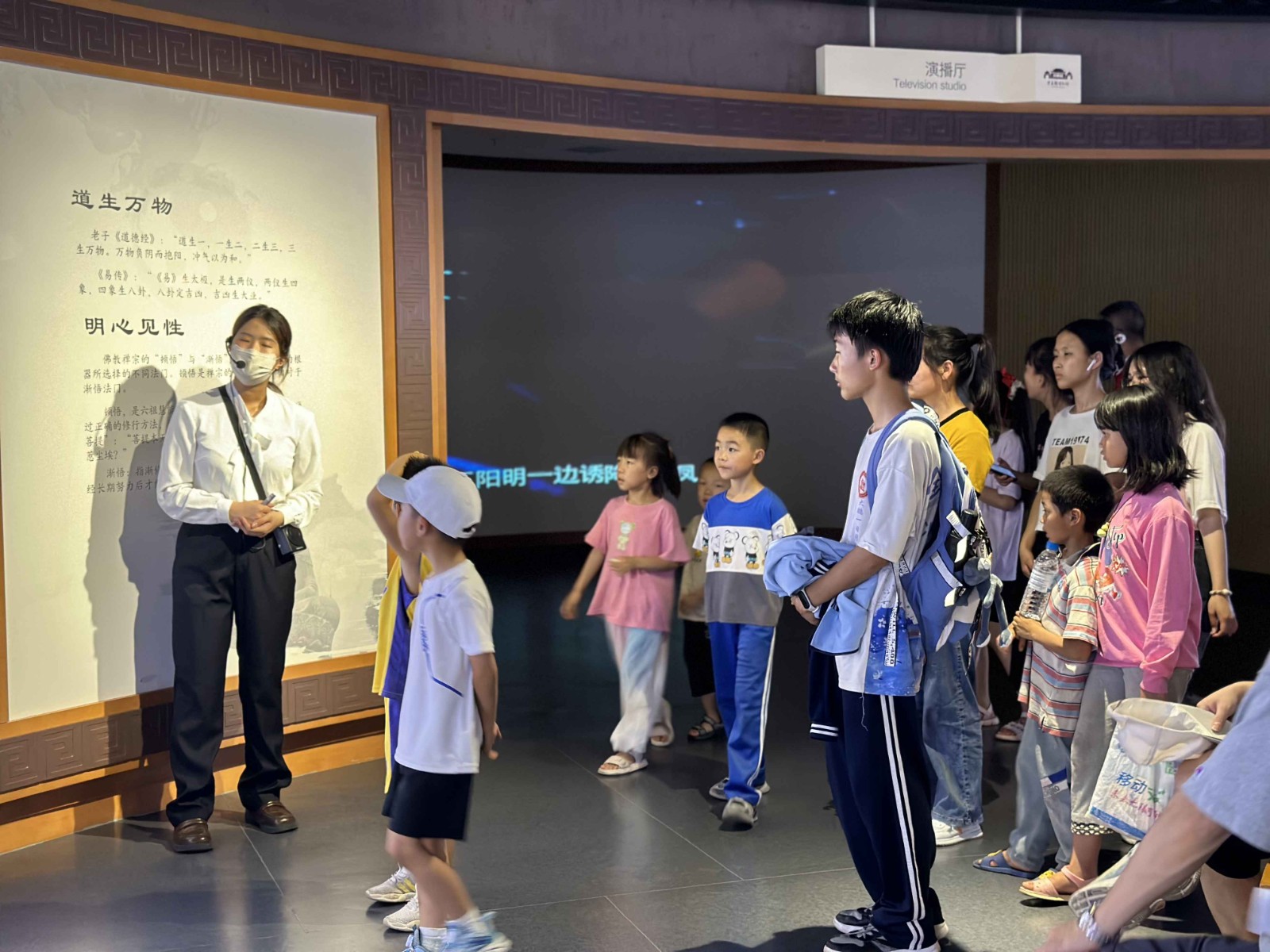 下午,孩子們和家長(zhǎng)一起走進(jìn)崇義縣博物館,聆聽講解員講述王陽(yáng)明在贛南平定匪患、頒布法令、整頓風(fēng)氣、心學(xué)形成過程等故事。孩子們好奇地看著周遭陳列的展覽品,近距離地接受陽(yáng)明文化的熏陶,進(jìn)一步開闊了孩子們的文化視野。