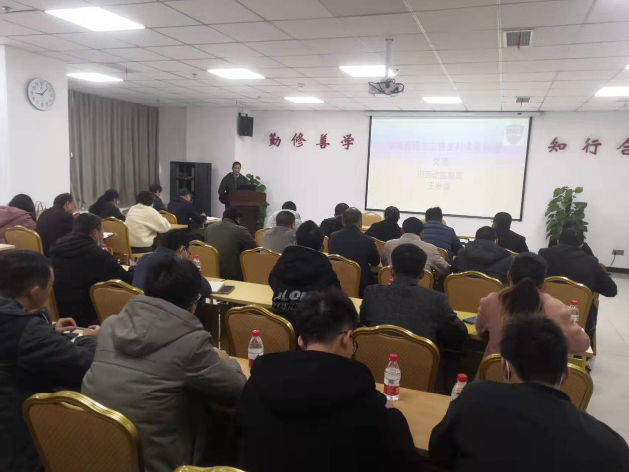 為進一步加強贛州城投集團在建工程項目農(nóng)民工工資支付規(guī)范化管理,提升項目建設(shè)管理人員管理水平,切實做好農(nóng)民工工資支付保障工作,近日,贛州城投集團黨委黨校舉辦保障農(nóng)民工工資支付專題培訓(xùn)。根據(jù)集團黨委黨校第二學(xué)期教學(xué)計劃安排,此次培訓(xùn)由工程管理公司承辦,贛州市勞動監(jiān)察局監(jiān)察一科科長王貴福受邀前來集團授課,集團各在建項目負責(zé)人、勞資監(jiān)管員、子公司共50余人參加培訓(xùn)。